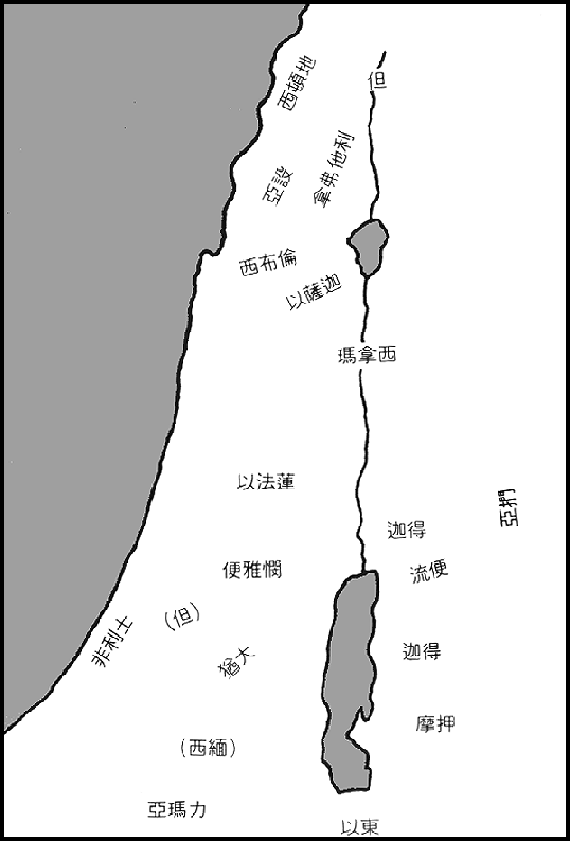 第四十九章一系列的诗句也是如此。这些诗句意图作为雅各给他十二个儿子最后祝福,但是事实上,正确的理解,它们却比较像是告诉我们,在约书亚入侵迦南之后,以色列十二支派的兴衰。请参阅上图关于定居地域的梗概。