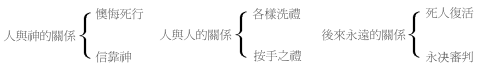 (丙)为我们显在上帝前 基督不是进了人手所造的圣所,乃是进了天堂,为我们显在上帝面前。(九之廿四)主在世有三大要事:(1)死于十字架(2)升上天(3)再临。三者合而成完全的救恩。