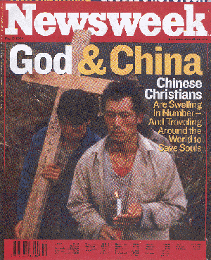 1。这是《新闻周刊》2004年五月十日的封面,以《上帝与中国》(God & China)作标题,说中国的基督徒人数激增,并到世界各地拯救灵魂。